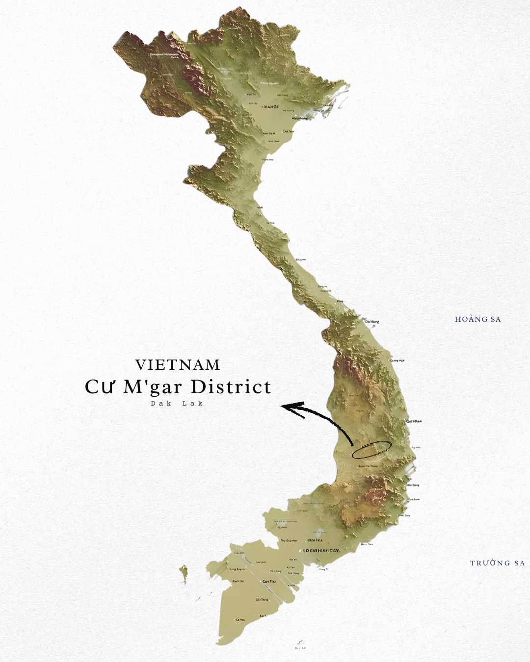 Our Specialty Robusta is sourced from multiple regions in Dak Lak Province, most notably from Cu M'Gar, offering rich volcanic soil and optimal rainfall and elevation.