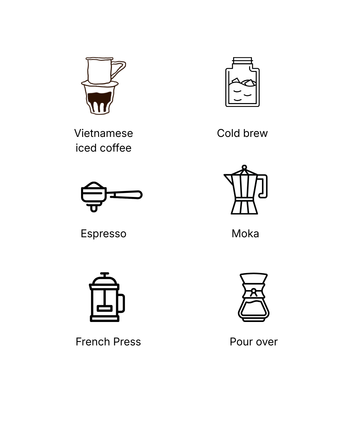 At VietCaPhe, our goal is to bring the delightful experience of Specialty Vietnamese Robusta Coffee into every Australian household. Our products cater for different brewing preferences and lifestyles. We invite you to create your own daily dose of VietCaPhe, where each comforting sip embodies a coffee experience like no other.