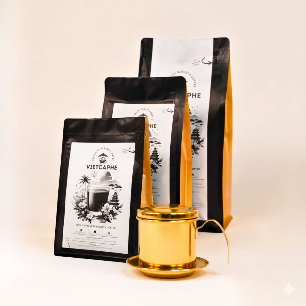Dive deeper into the world of Vietnamese coffee with our Highland Traditions Grand Set, offering an enhanced brewing experience with the authentic flavours of VietCaPhe’s Specialty Robusta Coffee. This set features our Signature Phin Filter and two bags of coffee, allowing you to explore the rich contrasts between our Dark Roast and Medium Roast varieties.